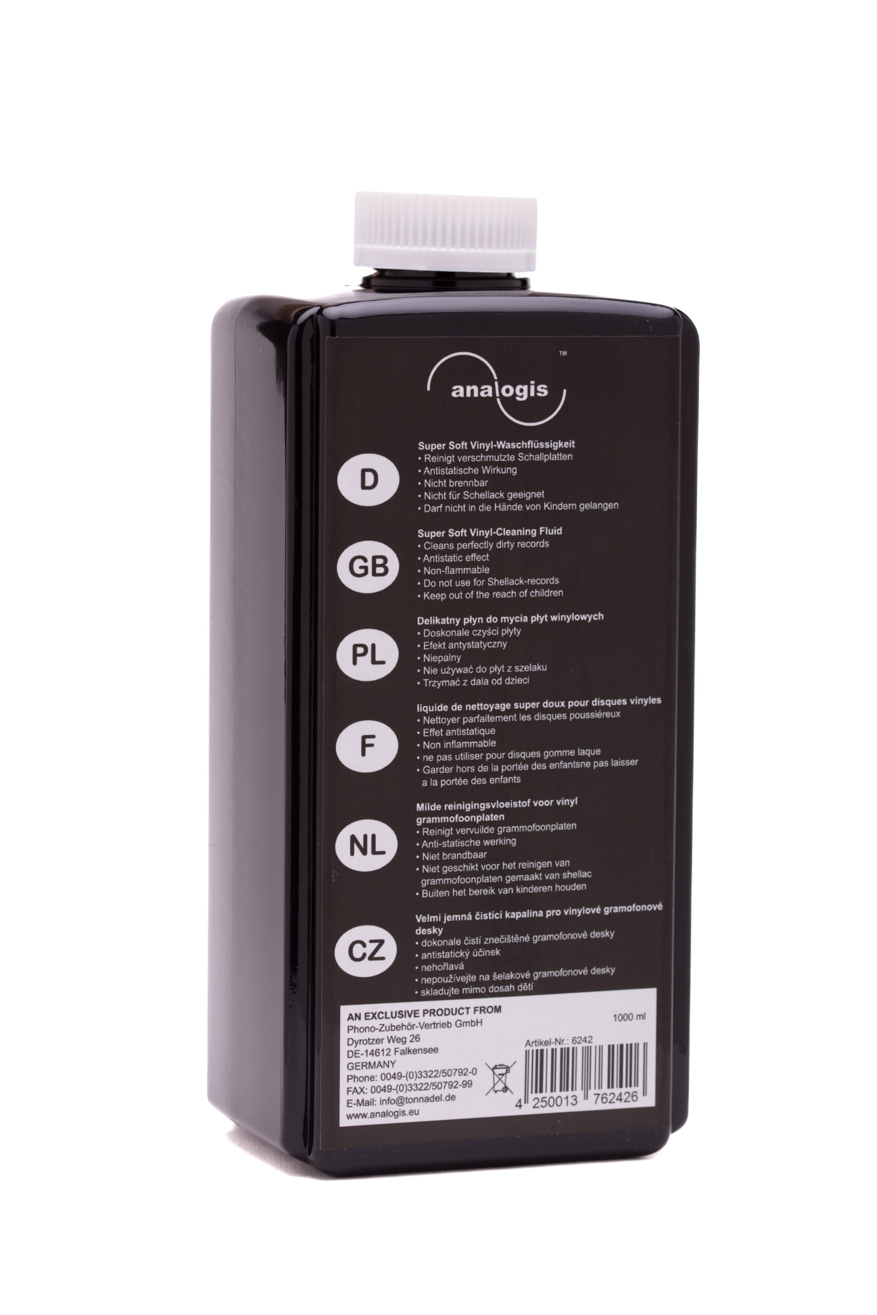 - wirkt antistatisch auf alle Vinyl-Schallplatten.