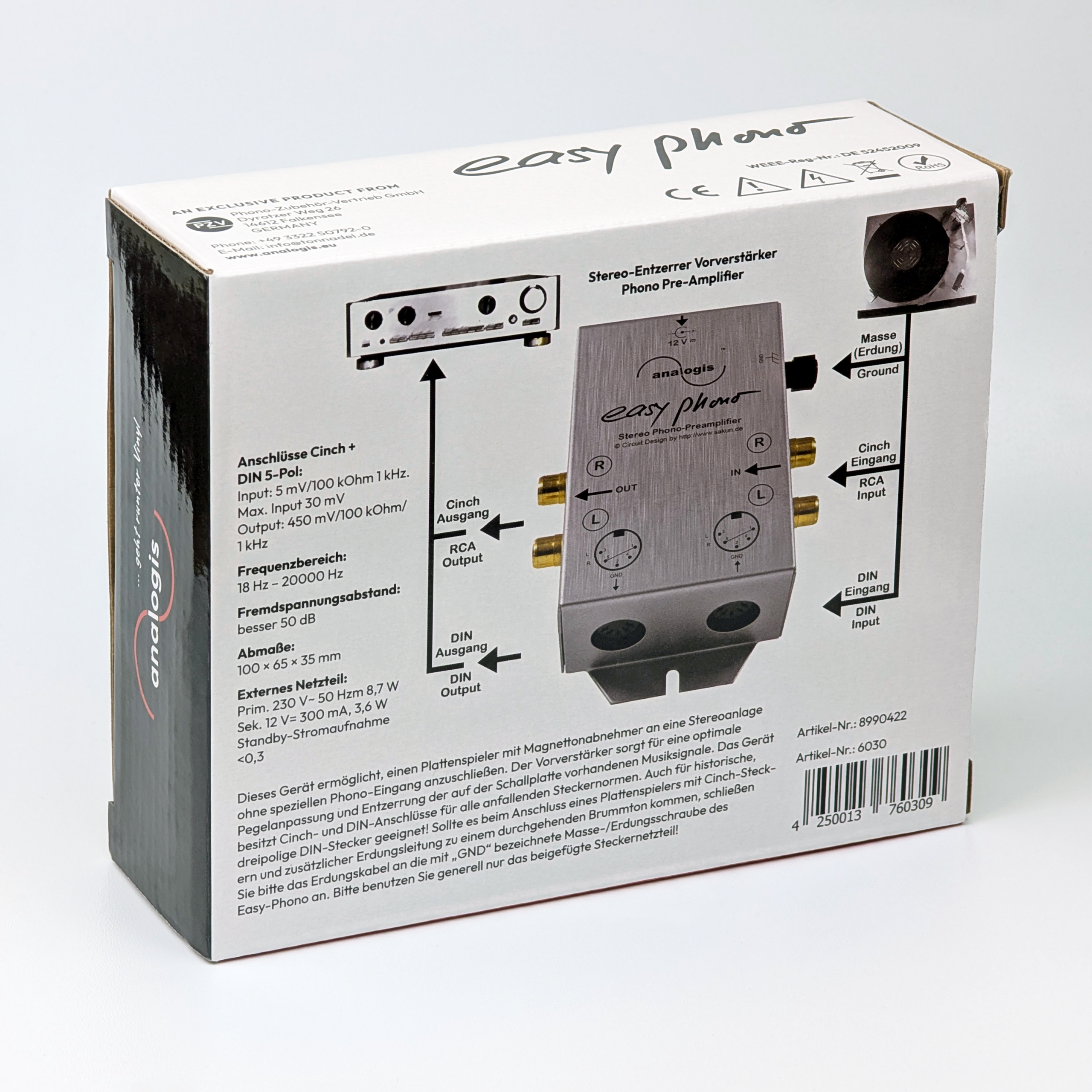 | Lieferumfang | 1x "Easy Phono" Phono-MM-Entzerrer-Vorverstärker 1x Steckernetzteil |