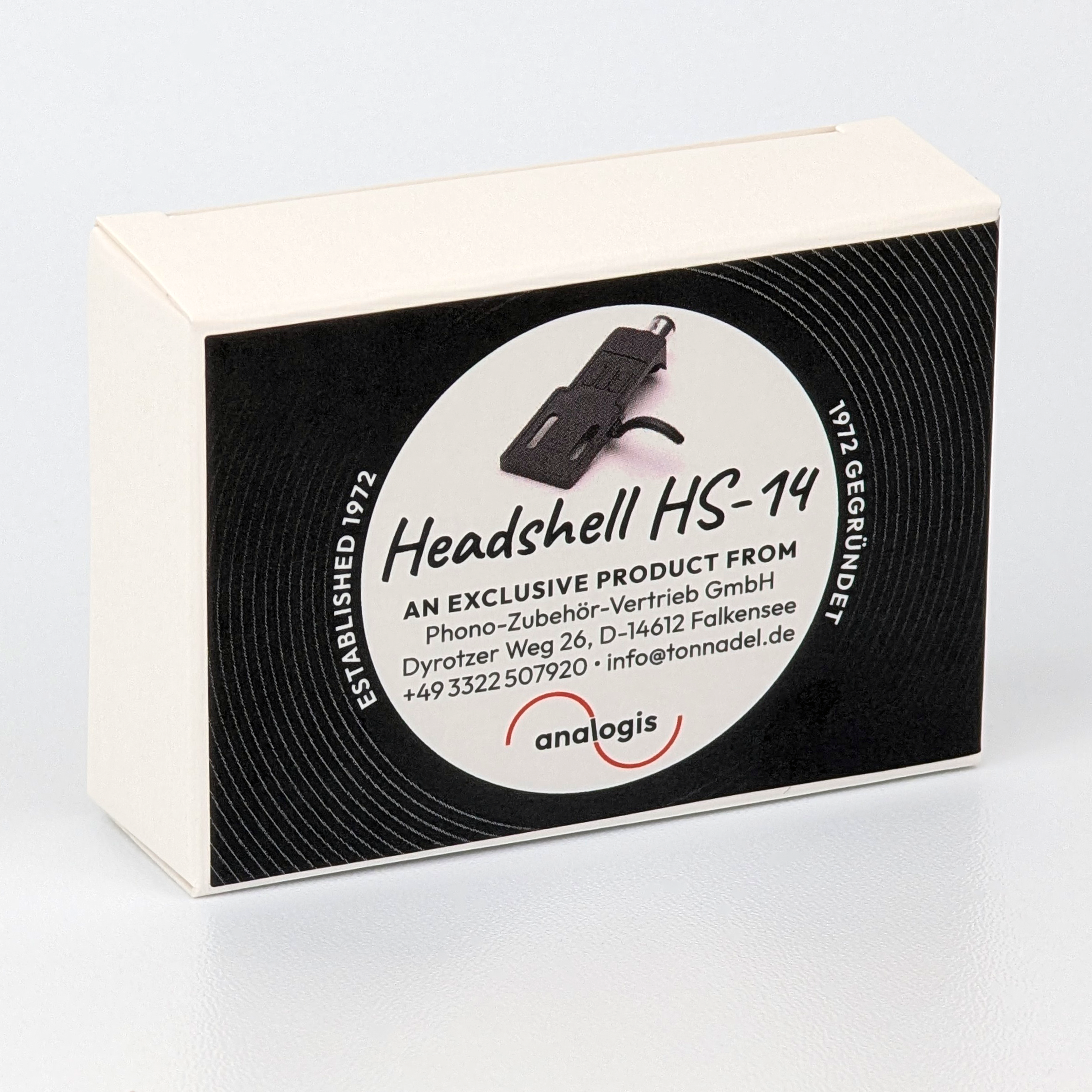 The analogis HS-14 headshell in ADC design is suitable for mounting a cartridge with a standard 1/2″ attachment and for connecting to turntables from almost all manufacturers with J or S tonearms and a locking nut (SME connection).